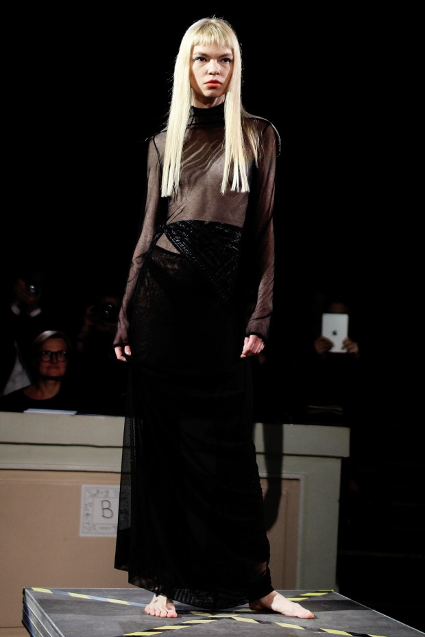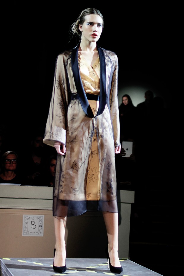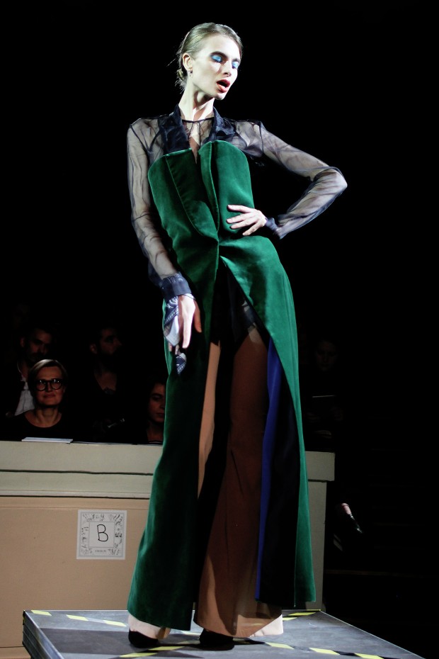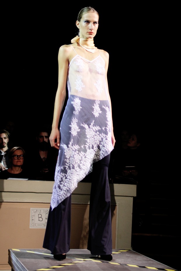 Показ новой коллекции от молодого дизайнера Ивана Фролова прошел достаточно поздно — в 23:00 — но гости увидели в этом особенный символизм: ночью модели в откровенных и сексуальных нарядах прогуливались по подиуму в Доме учителя. Основные мотивы — свобода, провокация и дерзкий вызов — остались прежними с прошлого сезона. На этот раз их обеспечивали прозрачное кружево, спущенные плечи, тонкие шлейки и глубокие вырезы. Для сезона S/S 2016 FROLOV предложил одежду из шелка, шифона и бархата.