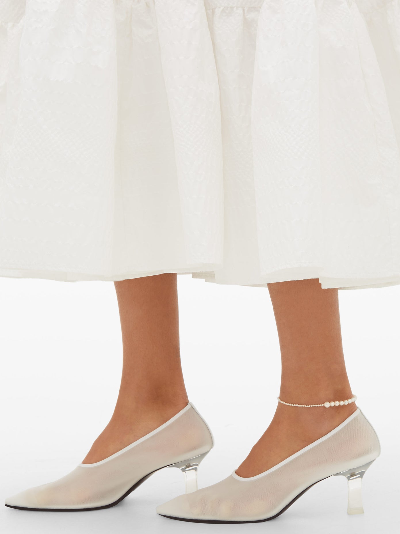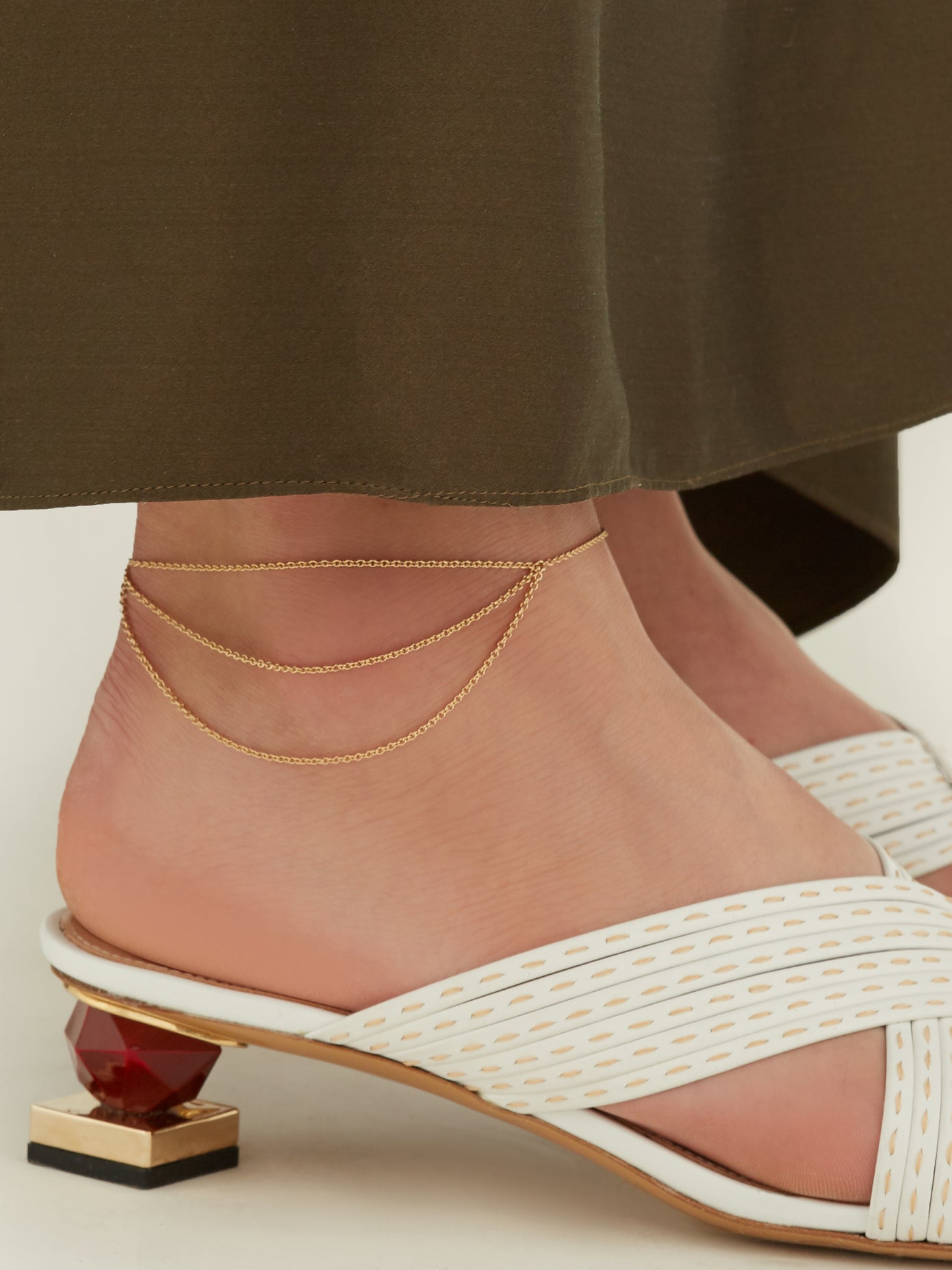 Носить браслеты на щиколотке можно как в сочетании с босоножками на тонких лямках, так и с мюлями или кроссовками. Выбирайте браслеты в виде цепей, орнаментов, выполненных из бисера или бусин.