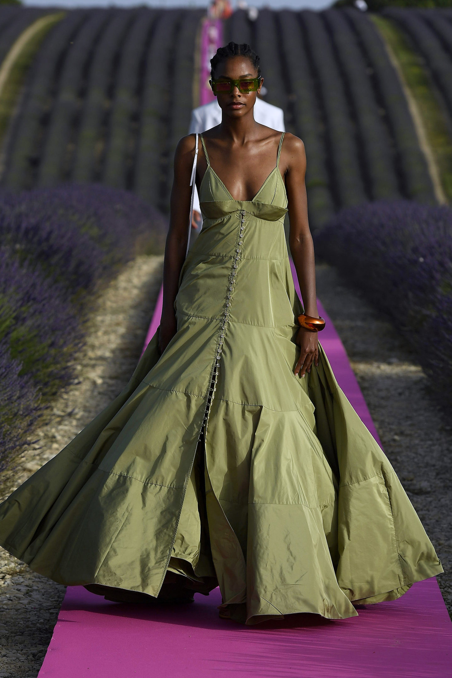Глубокое декольте без налета вульгарности приветствуется в платьях и топах. Форма вариируется от квадратного выреза до глубокого овала и бюстье. В своих показах изделия с декольте продемонстрировали Jacquemus, Bottega Veneta, Miu Miu и другие модные дома.