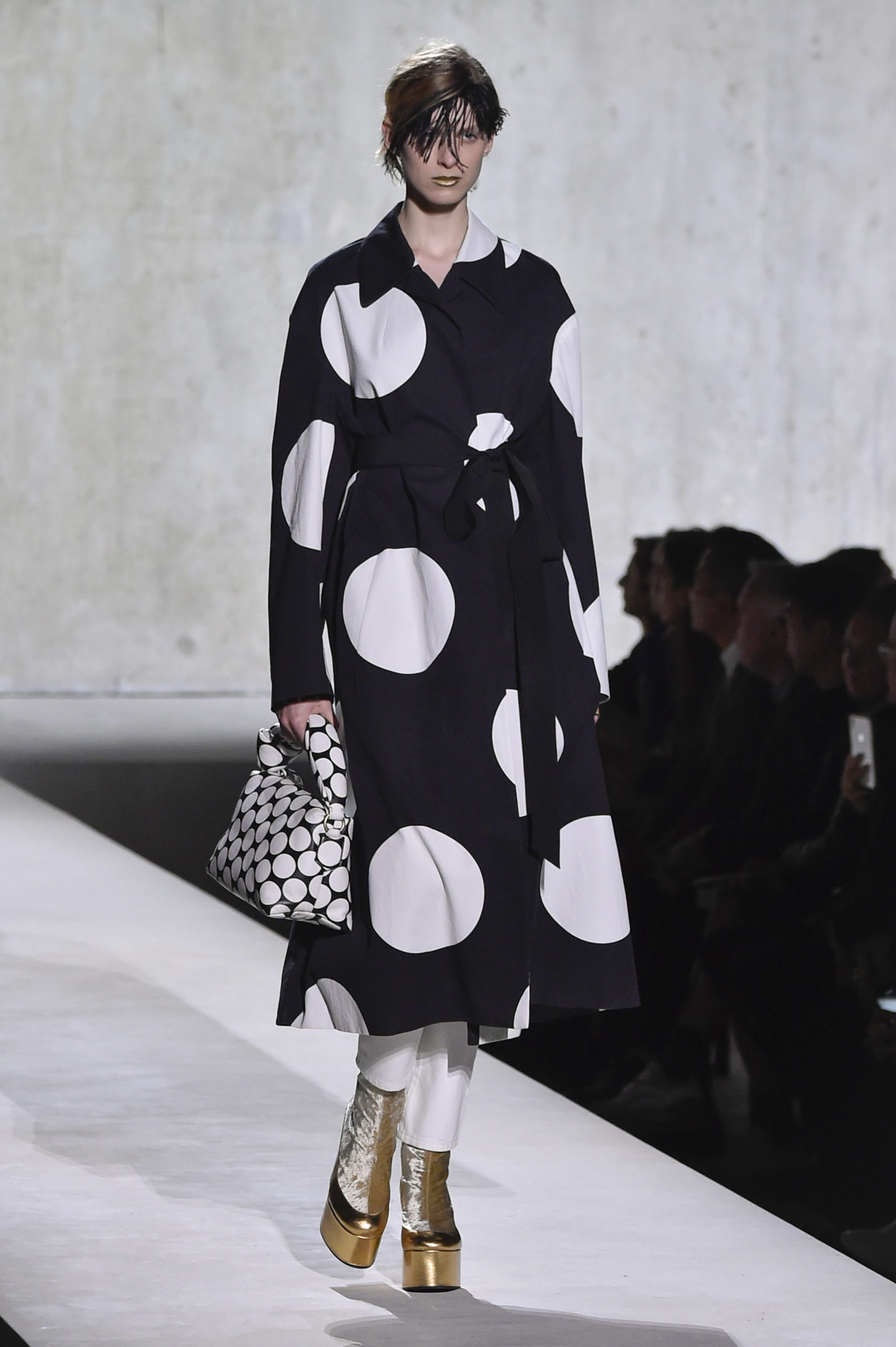 В 90-х во время кризиса известные дизайнеры, такие как Helnut Lang, Calvin Klein, Yohji Yamamoto и другие сделали ставку не на яркие цвета и пышные убранства, а на минимализм и эксперименты с формами. Графичные линии и отсутствие броских деталей в одежде актуальны и в этом сезоне.