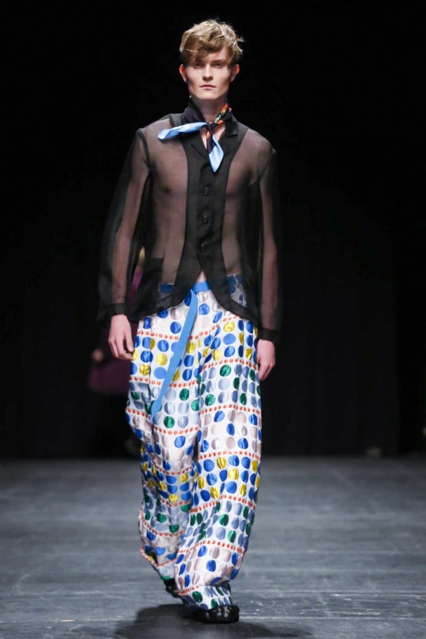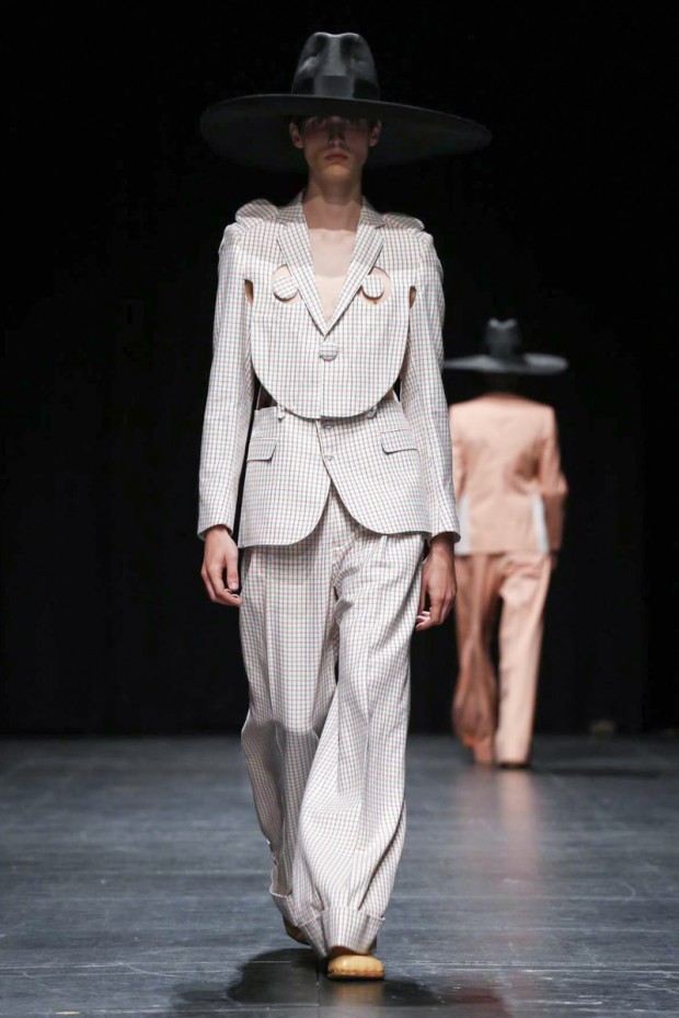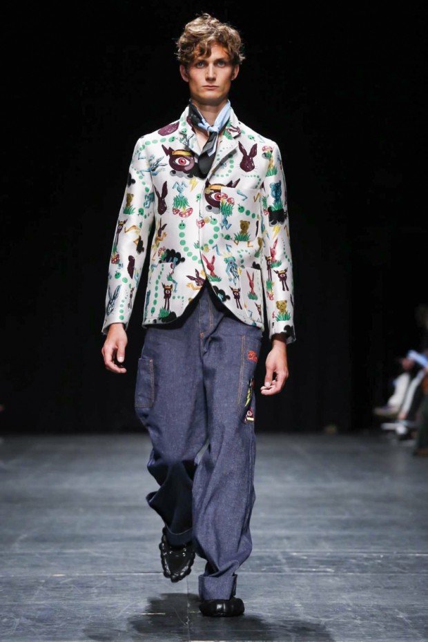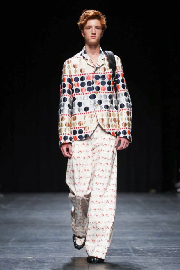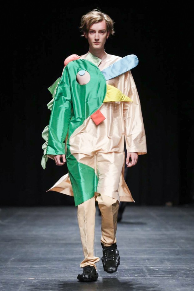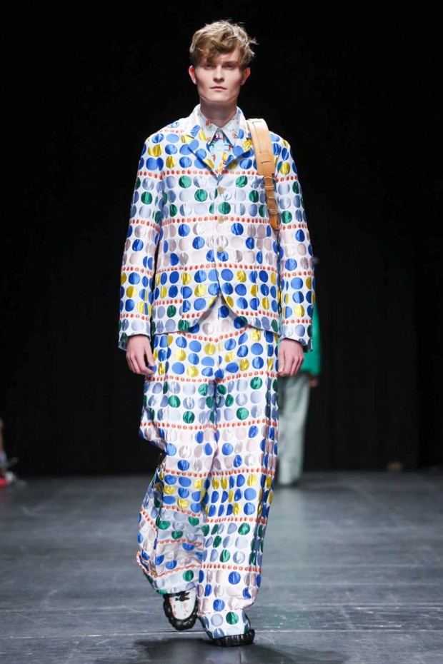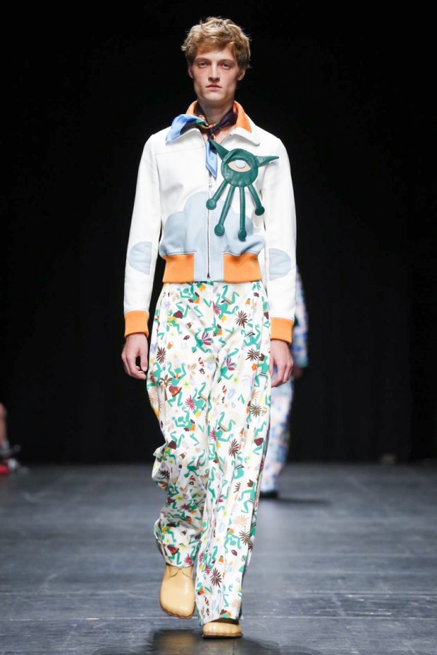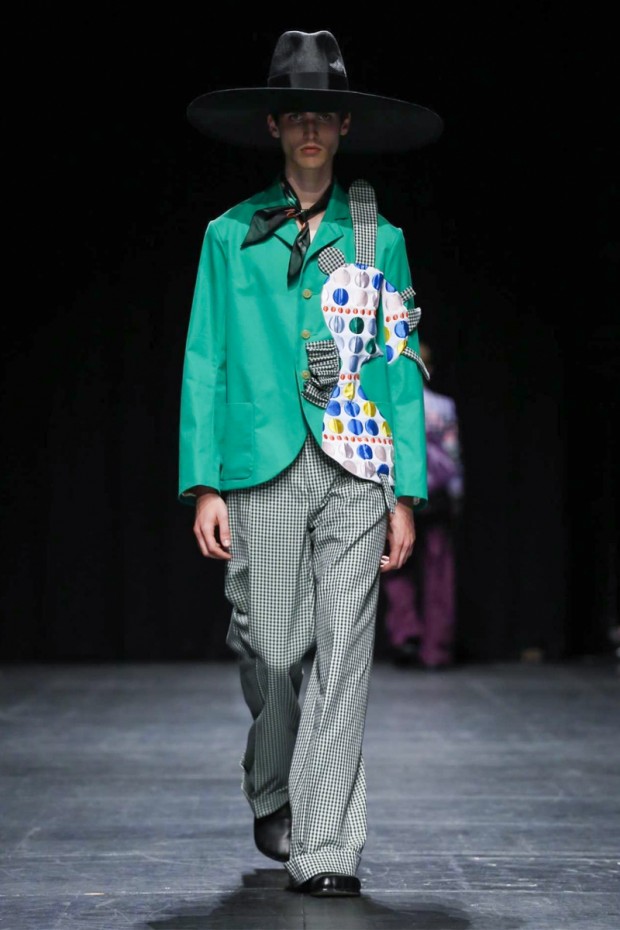 «Нас окружают камеры, – говорит о вдохновении для создания коллекции, которую он назвал «Электрический глаз», Вальтер. – Не только selfie, но и камеры наблюдения. Мы обязаны следить за всем, что происходит». Коллекция получилась очень веселой, не зря на шоу играла песня Дэвида Боуи Moonage Daydream.