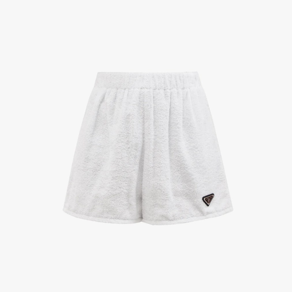 Prada triangle logo-plaque high-rise cotton-terry shorts $555