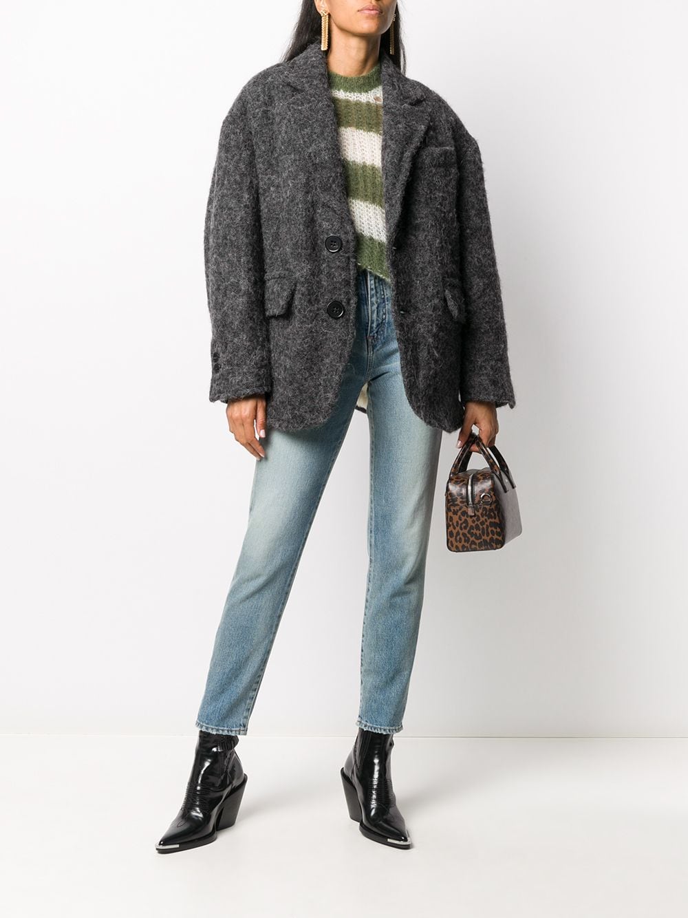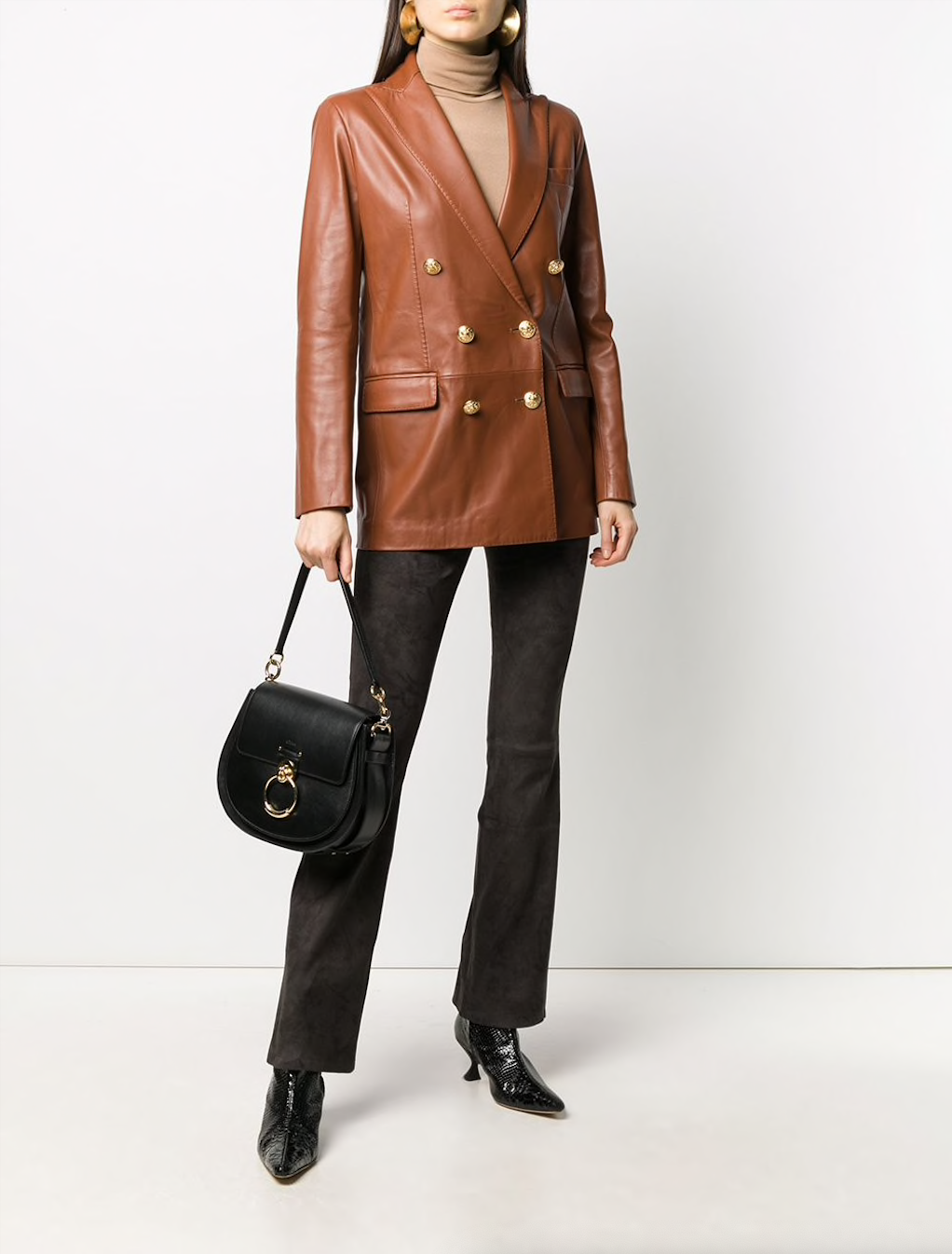 Плотный шерстяной пиджак может стать еще одним достойным вариантом верхней одежды на осень. Носить его можно как застегивая на пуговицы, так и подпоясав ремнем. Из расцветок выбирайте все ту же клетку, серый, коричневый или черный цвета. Также абсолютным фаворитом является пиджак выполненный из кожи.