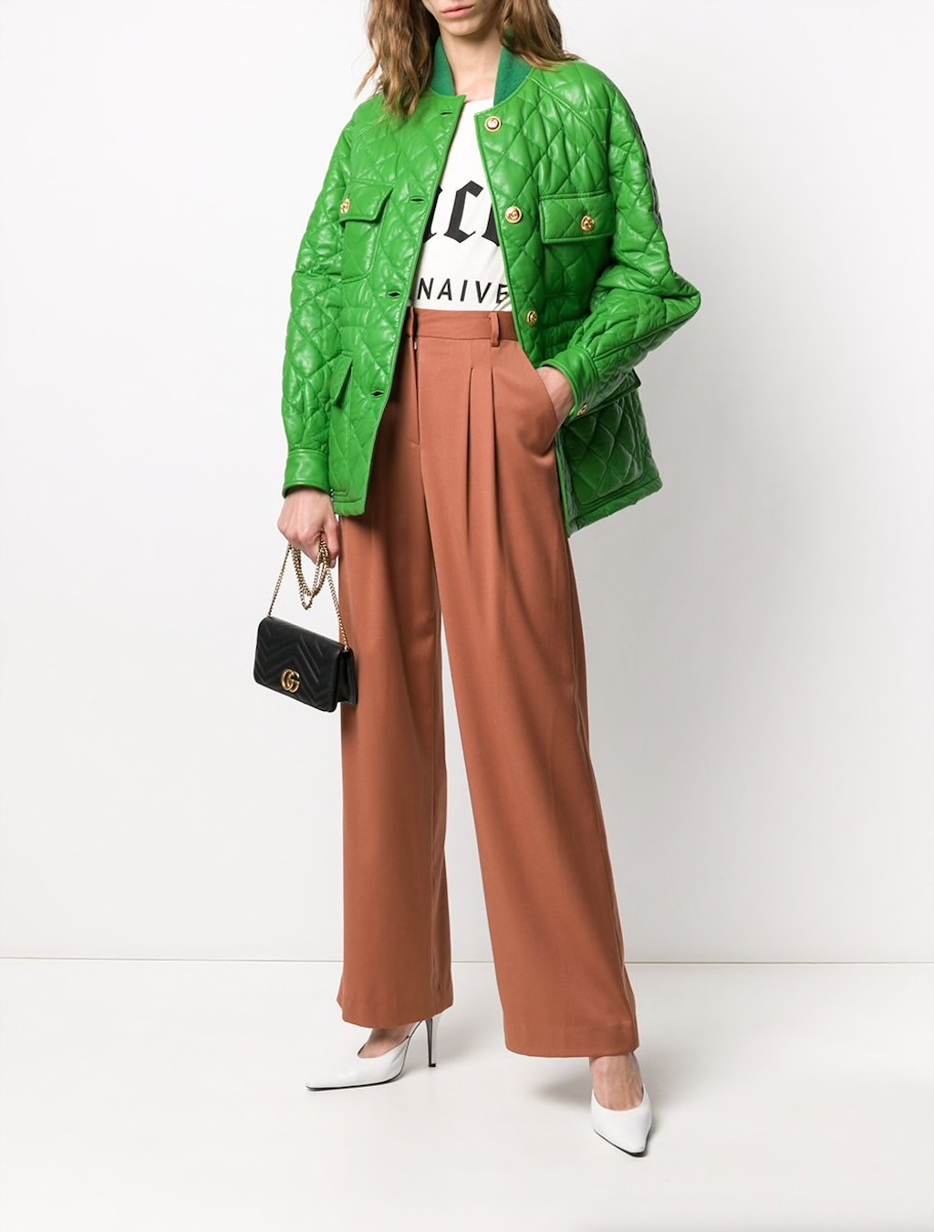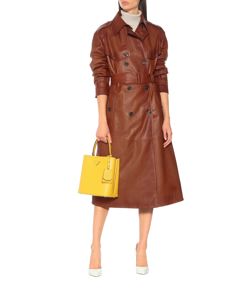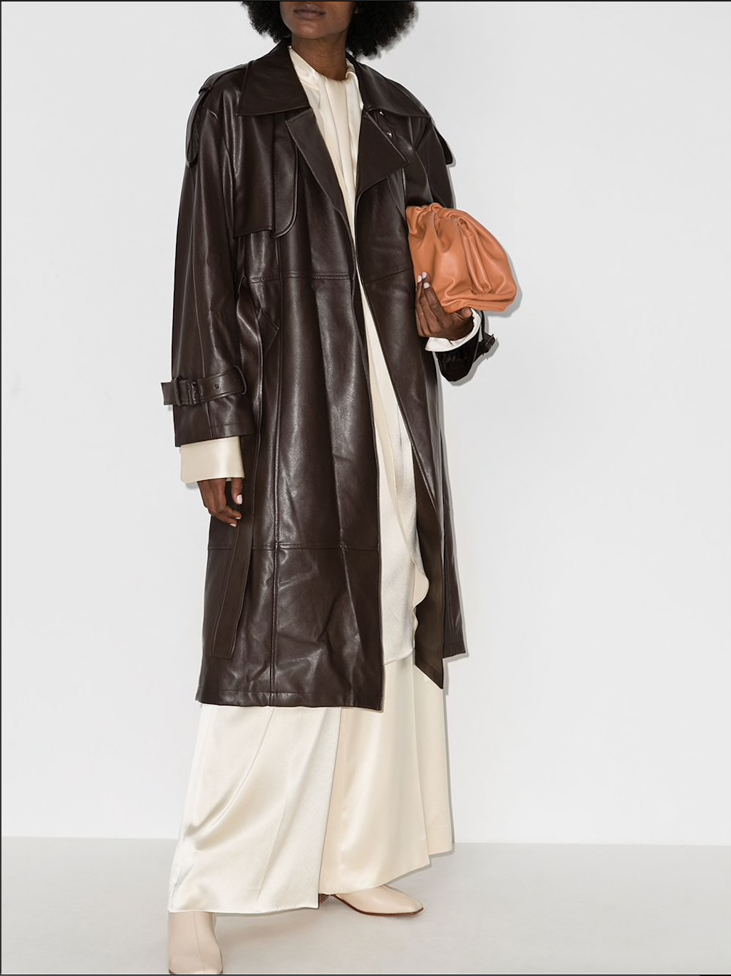 Уже который год кожа входит в список трендов, а вместе с ней и кожаное пальто. В этом сезоне актуальна как цветная кожа, так и total black образ в стиле «Матрицы». Слишком яркое кожаное пальто, безусловно, может присутствовать в вашем гардеробе, но будьте готовы к тому, что этот айтем не на каждый день. Если есть более повседневная замена — берите смело. Если же хочется более универсальный вариант, то присмотритесь к кожаному пальто в оттенках коричневого, чёрного цвета или марсала. К слову, если подкалка у изделия не слишком плотная, носите кожаное пальто на манер платья.