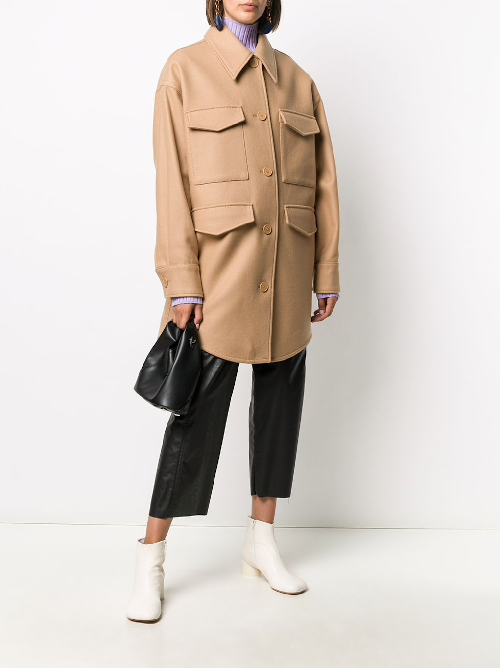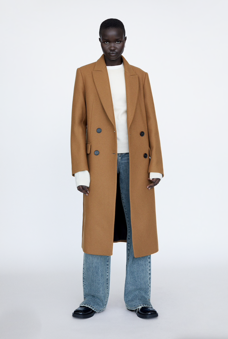 Ещё один представитель классики. Из сезона в сезон вы встретите пальто цвета camel чуть ли не в каждой рекомендации по покупкам на осень. Но стоит отметить, что в этом сезоне дизайнеры сделали ставку на знаковый силуэт пальто 90-х: прямой крой, акцентные плечи, длина – за колено. Пальто цвета camel 2020 больше не оверсайз, но и не слишком в облипку. Сейчас актуальный силуэт — полуобъемный.