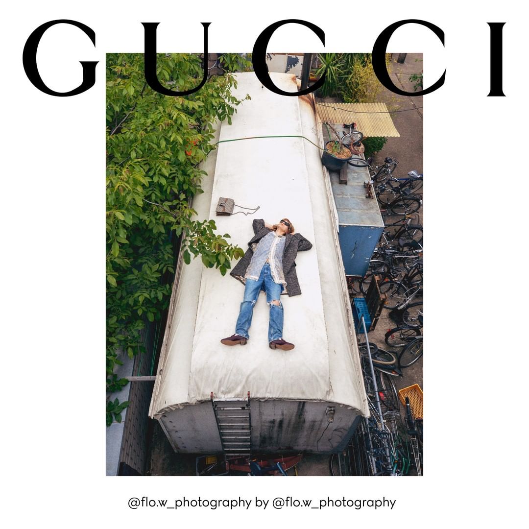 А.М.: Это интересно. Это красиво. Когда я увидел, что они сделали, это невероятно. Я имею в виду, когда я увидел Флориана (@flo.w_photography) на крыше фургона… Потому что, хоть я и в моде, я также всегда стараюсь быть ближе к реальности. Я был очень удивлен. У всех них были домашние животные – попугай, кот, собака! Это было так в стиле Gucci. Когда я увидел Мэй Лапрес (@meimeilapres) в ее квартире в Париже – это больше Gucci, чем реальность, которую я создаю с помощью имитации, понимаешь?