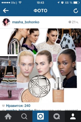 Вторая счастливая обладательница духов Miss Dior — Маша Бохонько, у которой больше всего отметок «Нравится» под публикацией в Instagram. Маша подошла к заданию творчески и вместо одного лука представила коллаж с лучшими beauty-образами Dior, который всего за сутки собрал рекордное количество лайков, 240 штук.