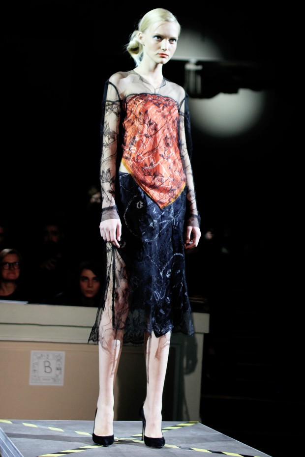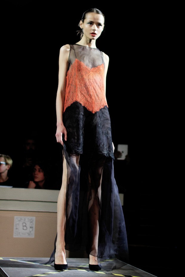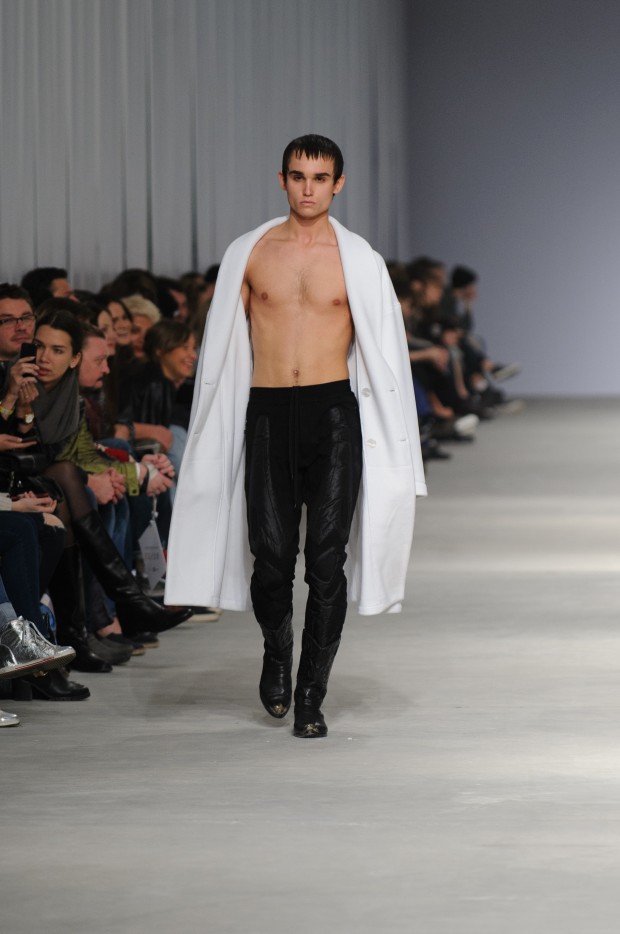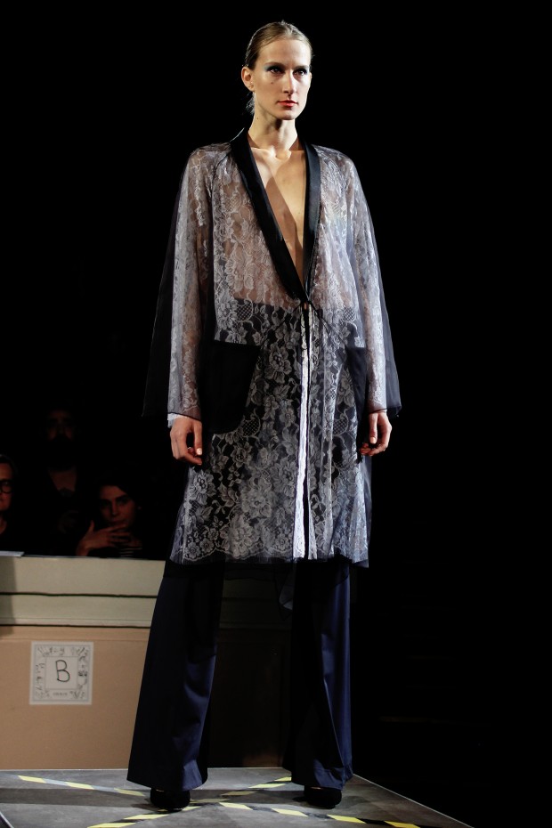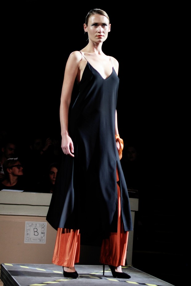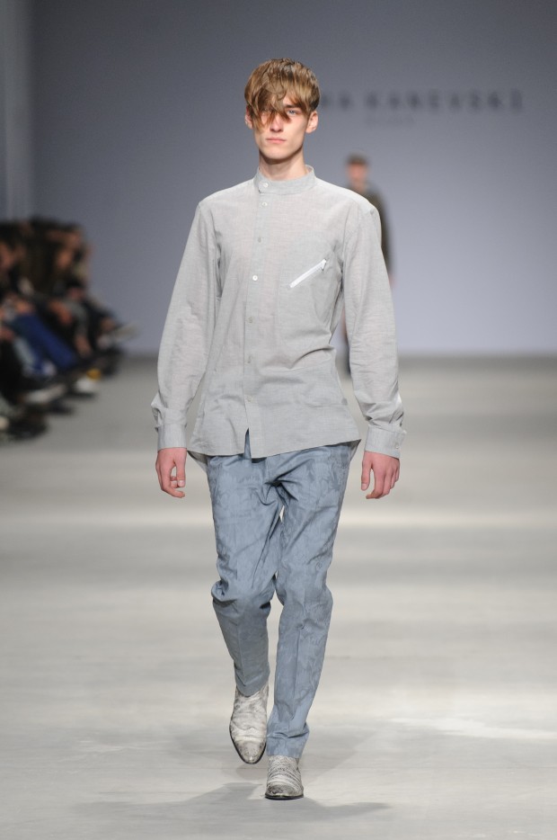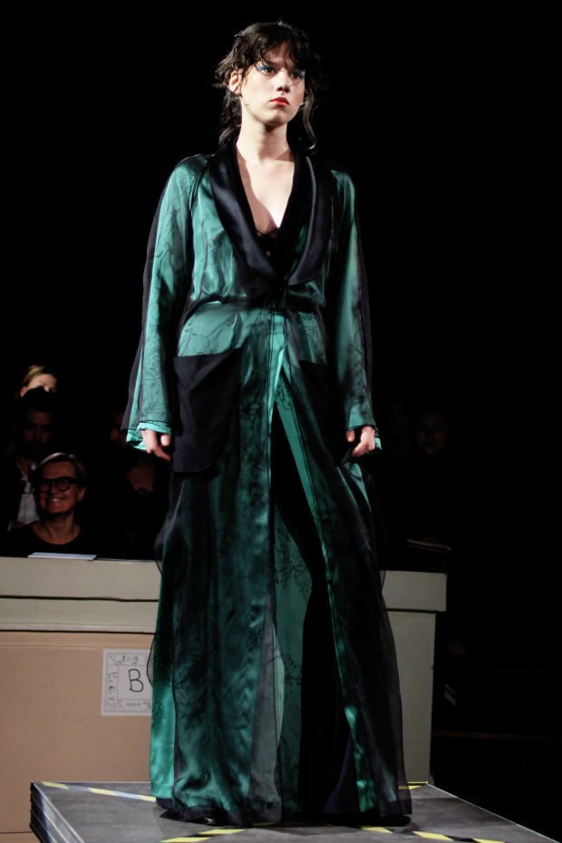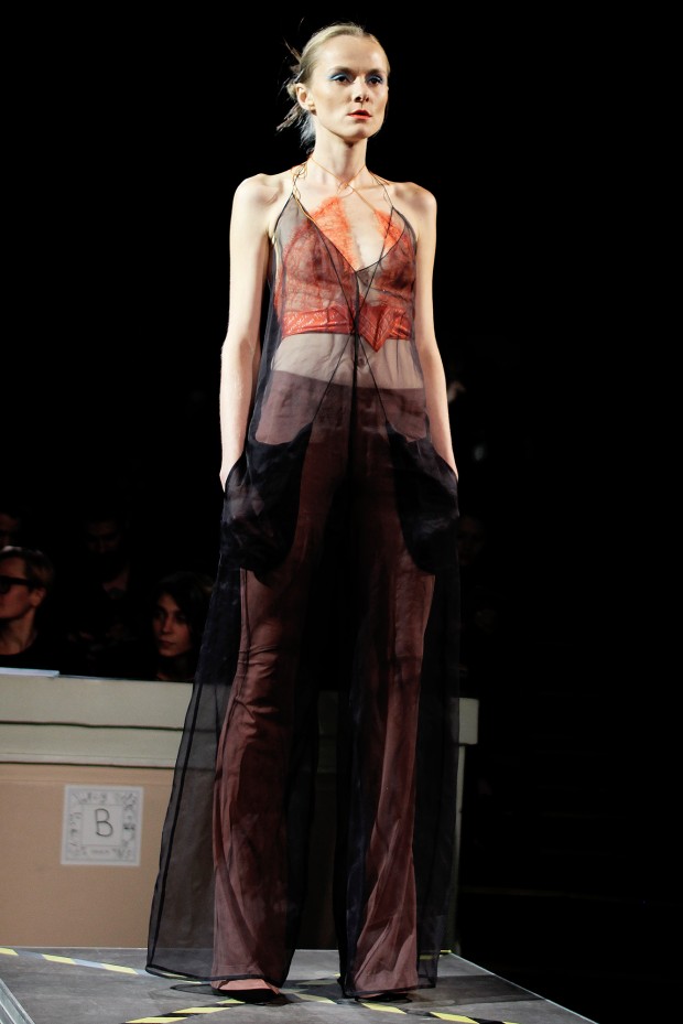 В субботу новую коллекцию представил sasha.kanevski. Если в прошлой коллекции дизайнер показывал футуристичных клаберов, то сейчас его фантазию захватили урбанистические варвары, нарушающие все правила составления образов. Комбинезоны из жаккарда, парки из плащевки, купальники и ковбойские сапоги, — все смешалось в ансамблях, которые мы увидели на подиуме.