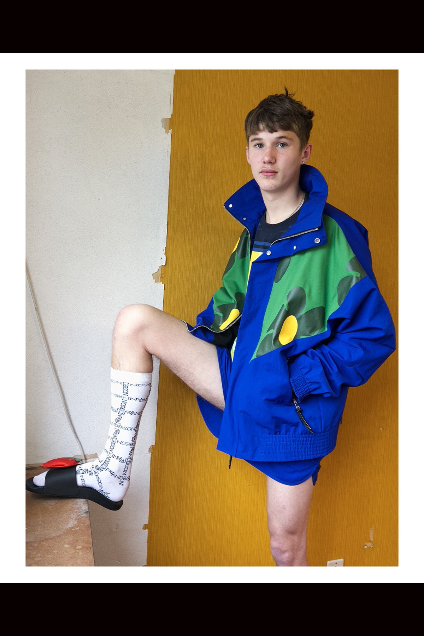 Герой мужской коллекции – «парень», который попал в момент сексуального пробуждения и ощутимой двусмысленности. Он носит вещи из мужского гардероба, но выглядят они как подростковые – большие спортивные брюки; джемперы с круглым горлом, с рисунками на груди или огромными якорями-логотипами бренда; боксеры для бега; худи и спортивные костюмы на молнии.