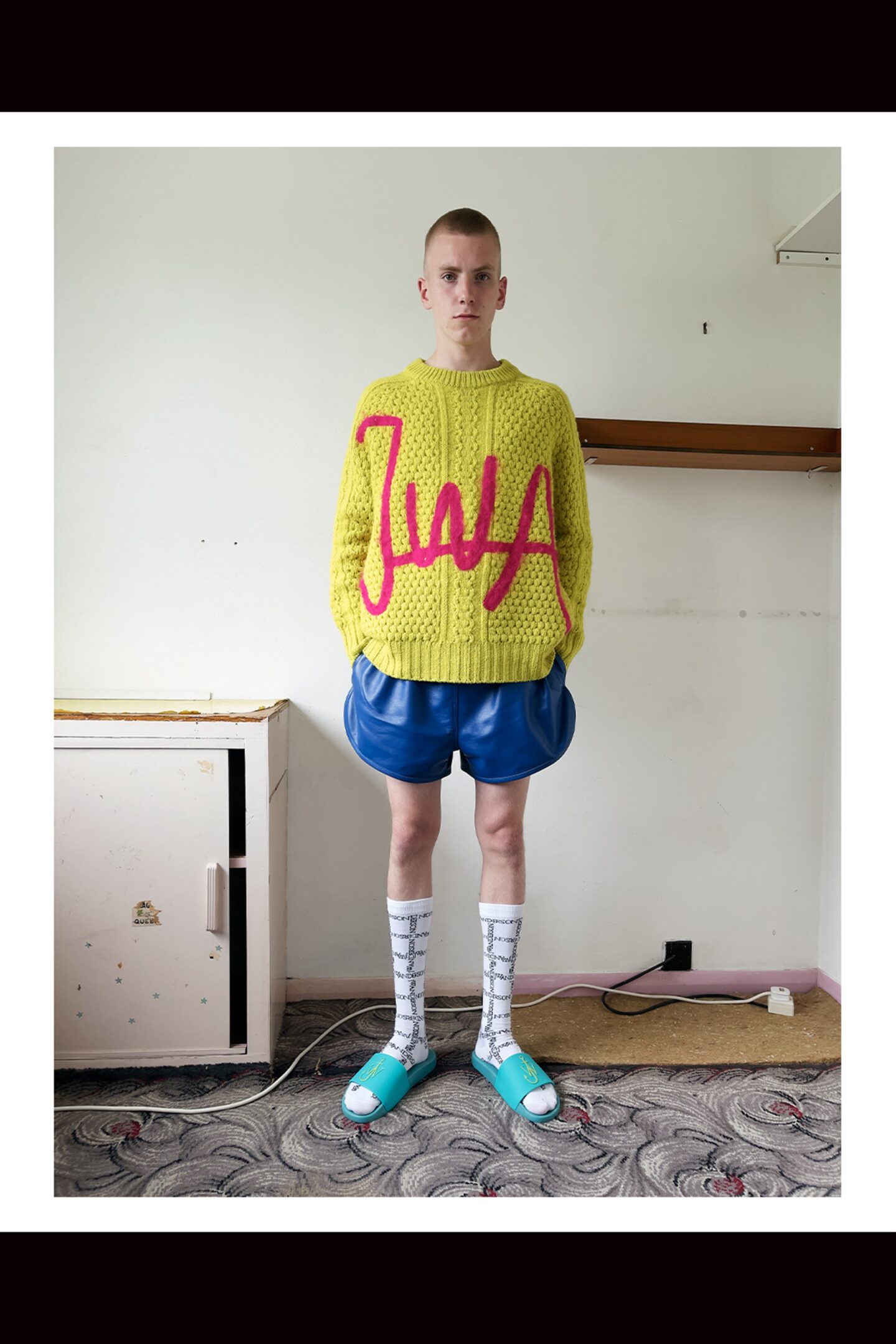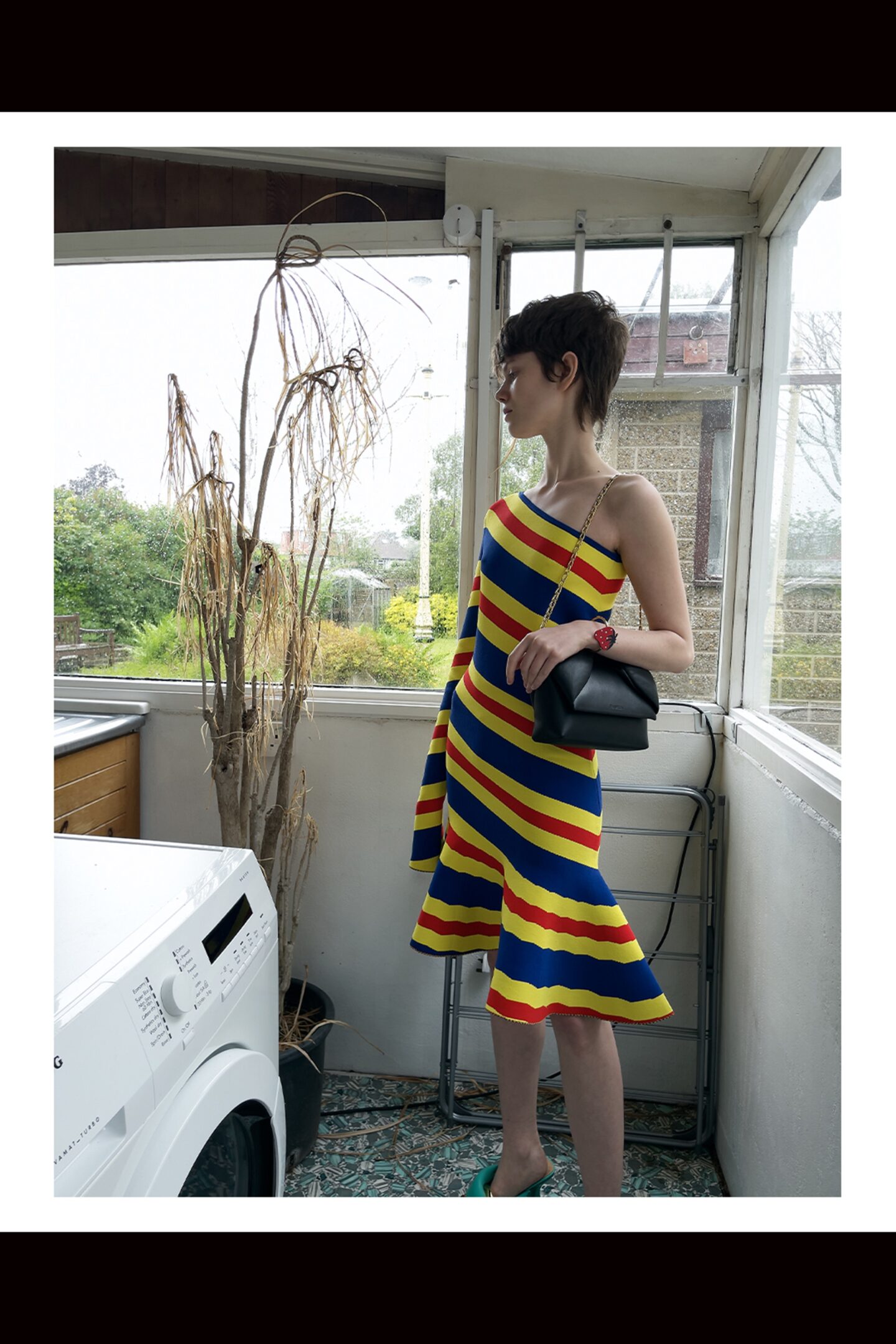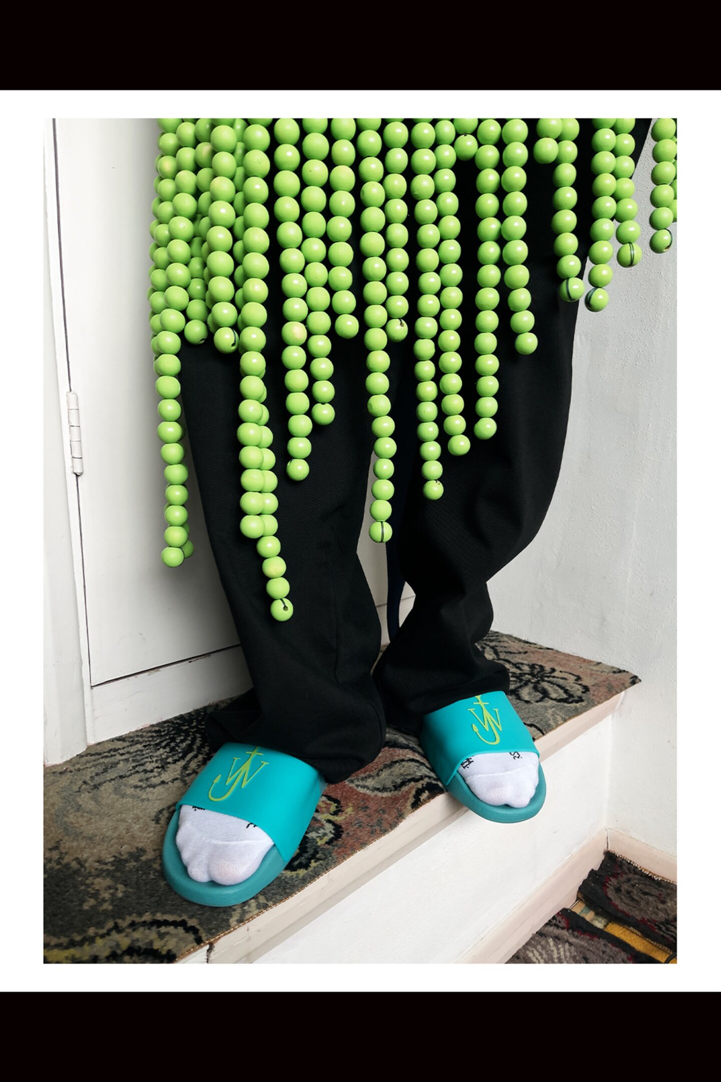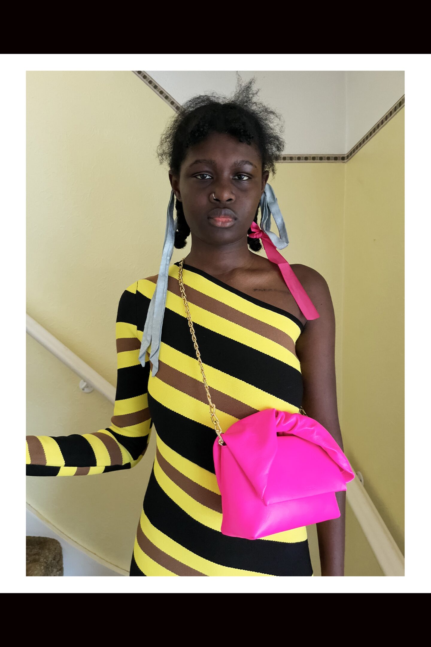 Платье-подушка на широком поясе, надетой на «тельняшку», по словам hypebae, символизирует тенденцию в социальных сетях 2020 года, когда стало нормой менять одежду на постельное белье. Коллекцию завершает пара солнцезащитных очков из предстоящей коллаборации JW Anderson x Persol.