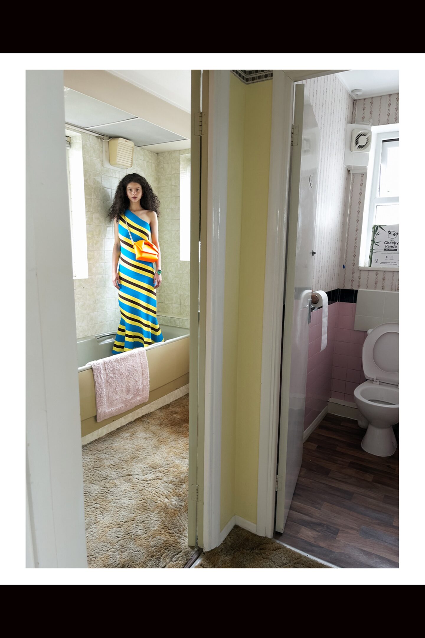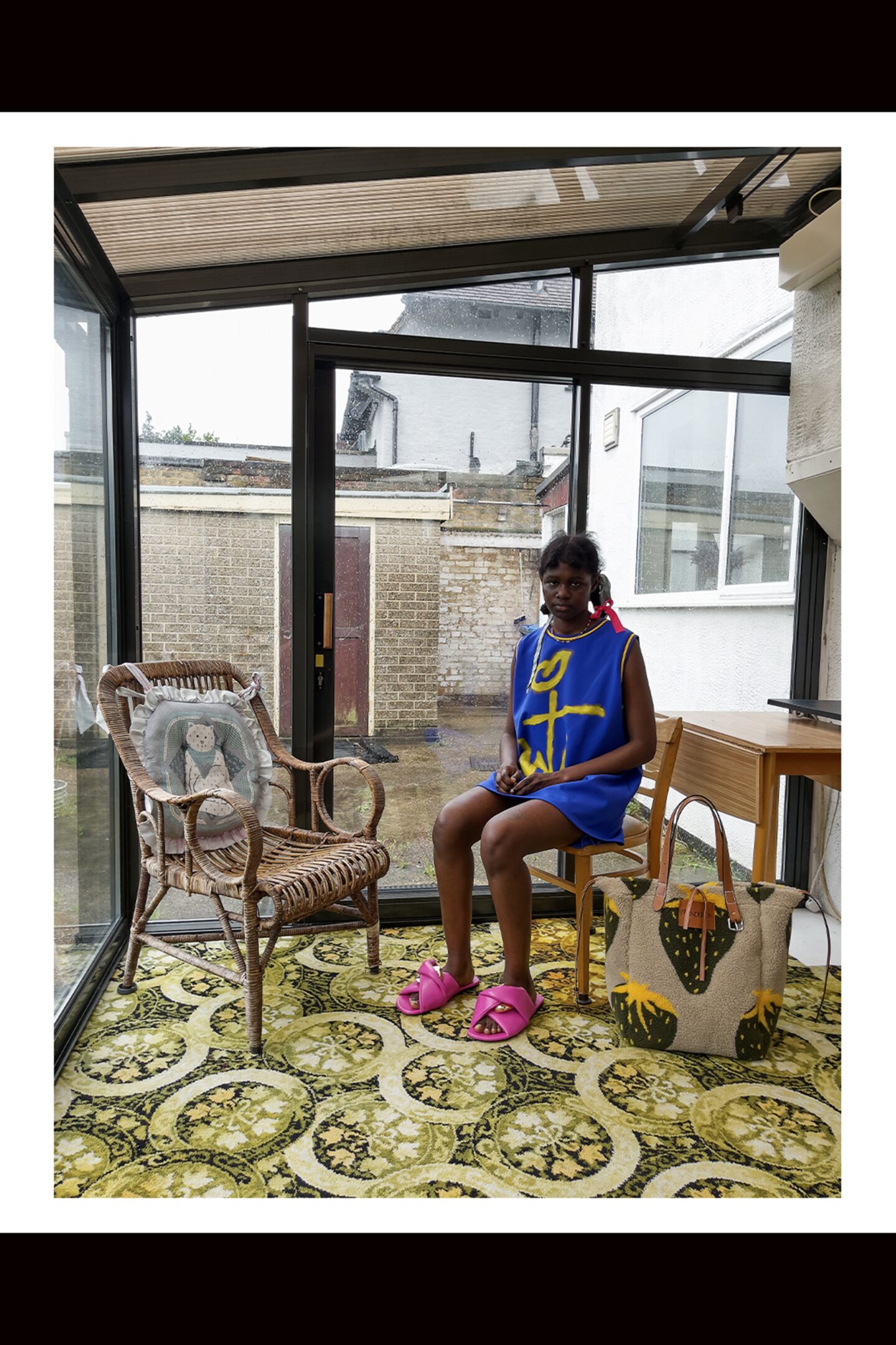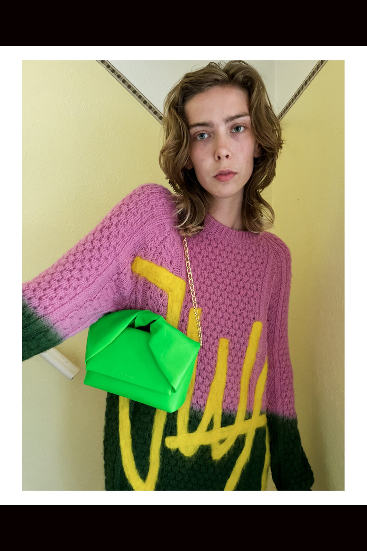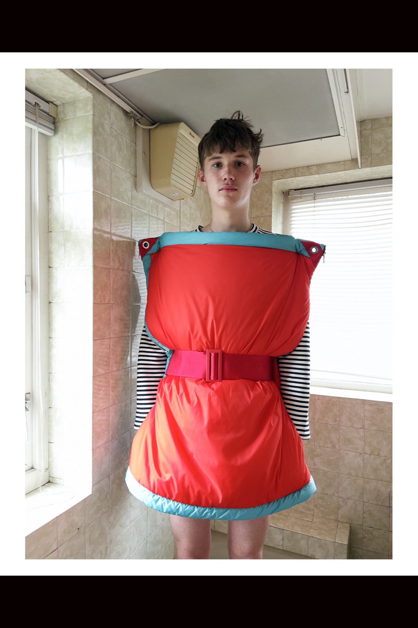 Платье-подушка на широком поясе, надетой на «тельняшку», по словам hypebae, символизирует тенденцию в социальных сетях 2020 года, когда стало нормой менять одежду на постельное белье. Коллекцию завершает пара солнцезащитных очков из предстоящей коллаборации JW Anderson x Persol.
