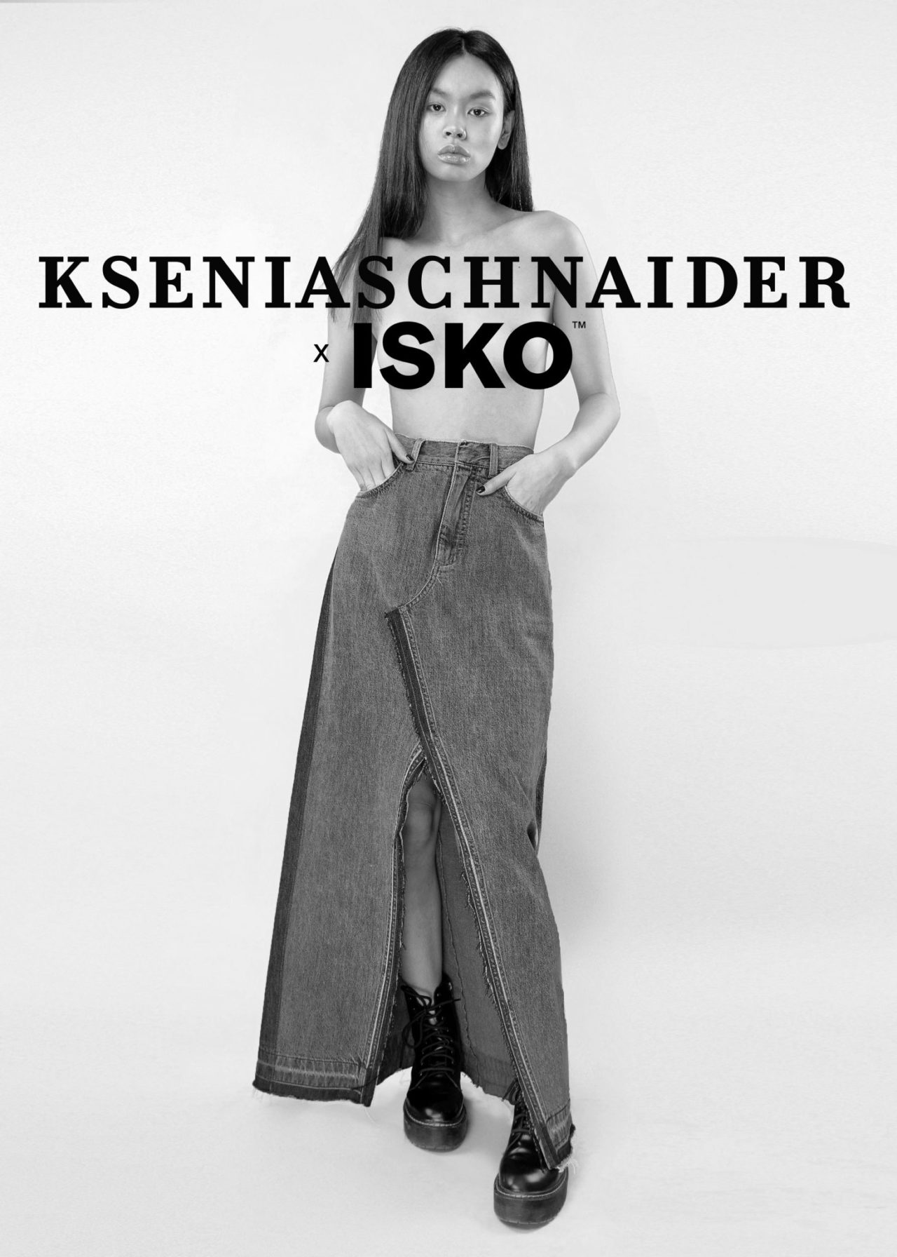 Але тренд на свідомість для бренду перестав бути просто трендом, а перетворювався на реальність, із якою дизайнери почали працювати дедалі активніше. Неодноразово Ксенія у своїх інтерв’ю говорила, що обожнює колаборації. Одним із успішних sustainable-проєктів стало партнерство з турецькою компанією ISKO, яка є одним із найбільших постачальників екологічного деніму. KSENIASCHNAIDER та ISKO випустили капсулу, де дизайнери відійшли від апсайклінгу, але закцентували увагу споживачів на новітніх технологіях у текстильній промисловості. Знакові моделі джинсів бренду були створені з бленду сертифікованої органічної бавовни та поліестеру, виготовленого з перероблених пластикових пляшок.