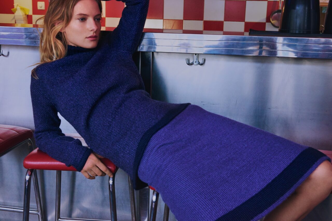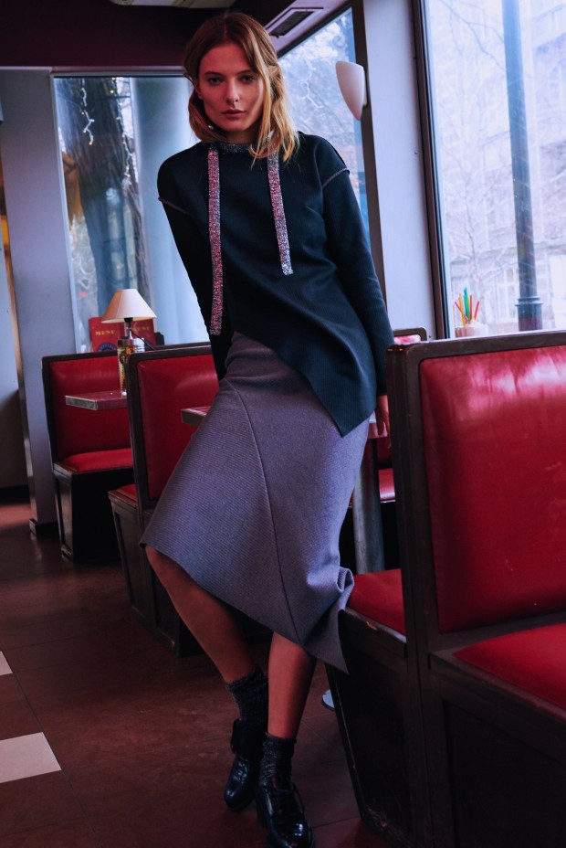 В новой коллекции, как и всегда, использованы исключительно натуральные материалы. Преобладают хлопок, шерсть и вискоза. Цветовая гамма представлена характерными для осенне-зимнего сезона черным, синим и серым. Яркий акцент создают лавандовый и серебристый цвета.