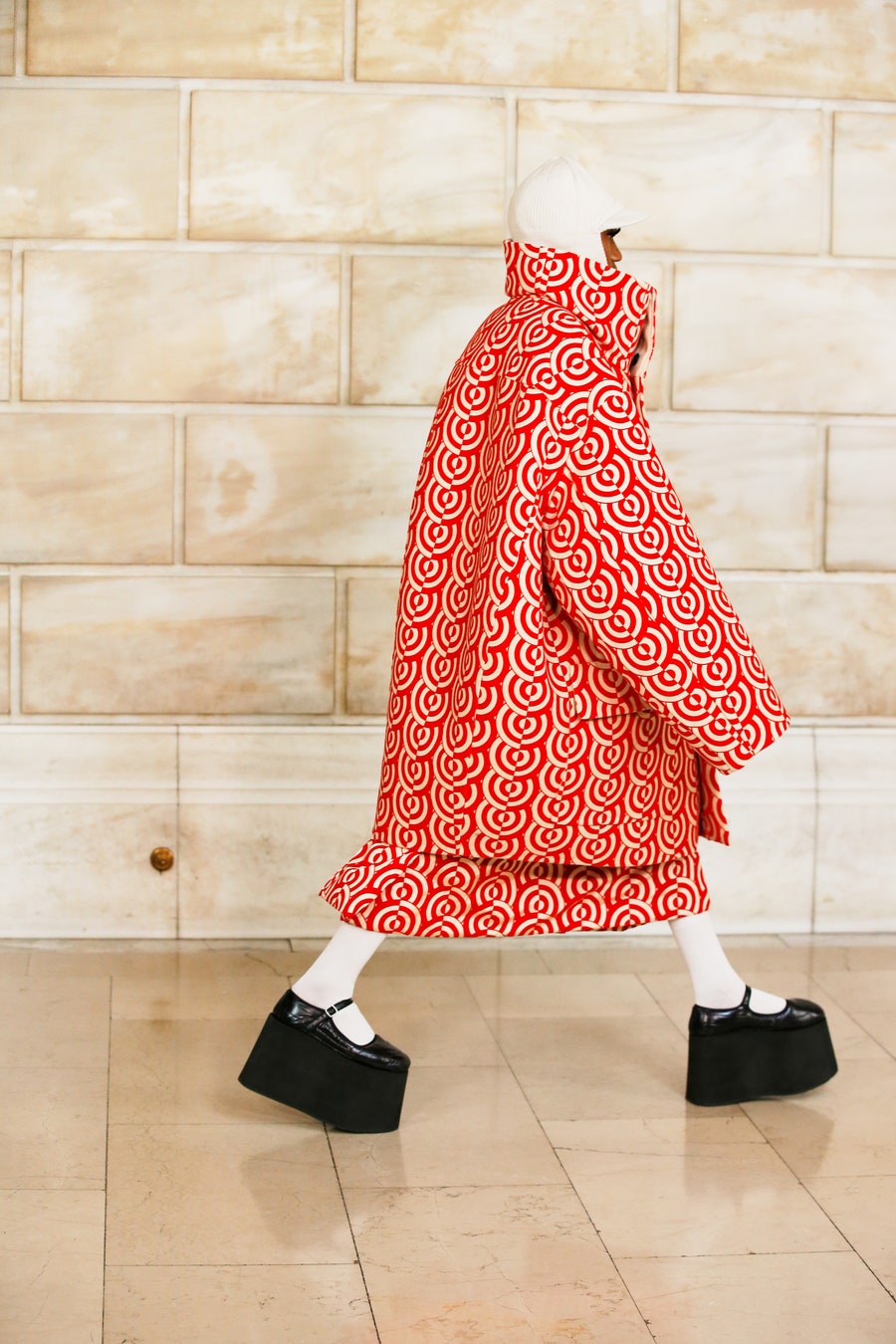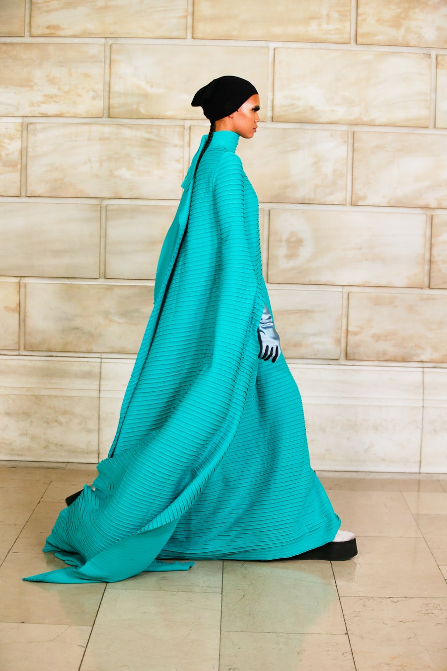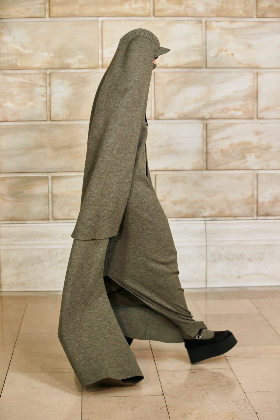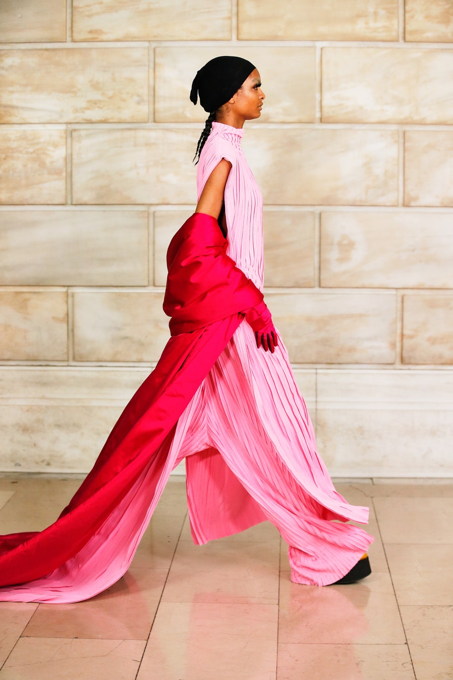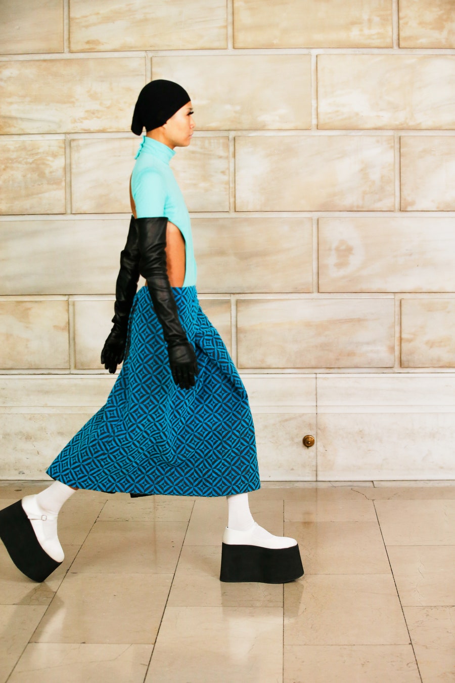 Платья на брюки; спортивные бомберы, декорироанные кольчугой на платья-кольчуги; дутые и классические пальто поверх; балаклавы, а на них кепки или bucket hats. А также: свитера, лыжные штаны, длинные перчатки и платья со шлейфами, юбки миди и боди с вырезами по бокам, дутые шарфы-снуды, леггинсы, самая крутая обувь сезона на платформе. И все это в миксе абсолютно сумасшедших текстур (лак, искусственный мех, дутые вещи), принтов и расцветок.
