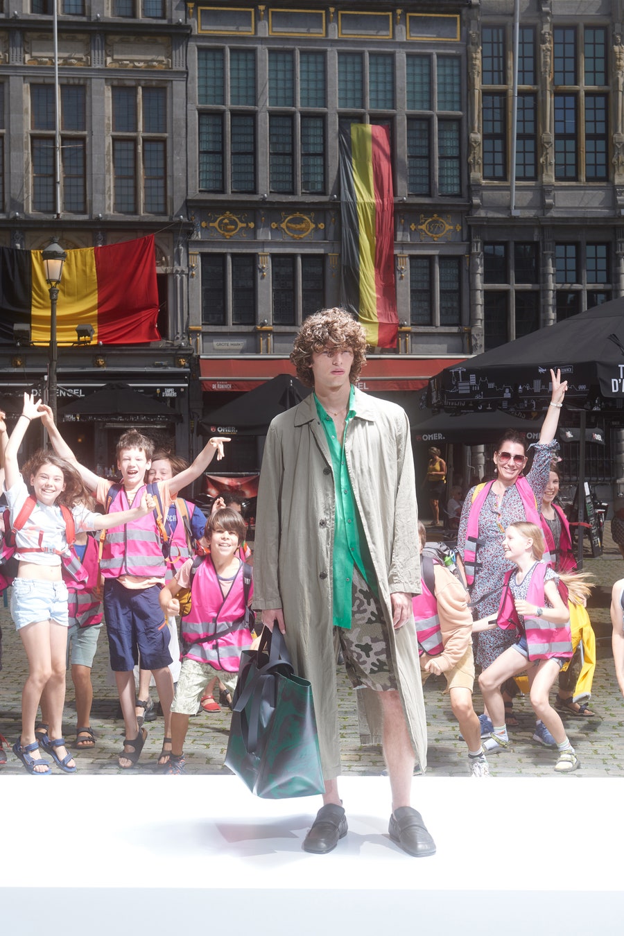 Чтобы отснять 56 кадров лукбука Дрис и его команда устанавливали белый подиум в каждом из указанных мест. Помимо как всегда уникальных принтованных вещей Дрис представил в коллекции однотонные удлиненные рубашки, пиджаки, тренчи, шелковые и хлопковые костюмы (шорты или брюки плюс рубашка), трикотажные костюмы (треники плюс джемпер с горлом), камуфляжные шорты, костюмы и парки, перфорированные рубашки и брюки. Аксессуары в коллекции представлены большими трапециевидными сумками-шопперами, солнцезащитными очками в цветной оправе с черными и цветными стеклами, классическими кожаными шлепанцами и шлепанцами с дутыми ремешками, мокасинами на небольшой платформе.