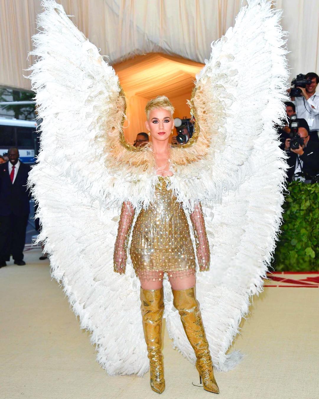 В 2017 году неожиданно для всех Кэти Перри перекрасилась в блондинку и остригла волосы под мальчика. Это событие ознаменовало новый раздел ее fashion-истории. Эпатажные наряды и несколько пугающие сценические костюмы стали для певицы нормой. Так, на Met Gala 2017 она появилась в красном платье от Maison Margiela Couture с длинной красной фатой и надписью Witness. Именно так назывался ее пятый студийный альбом – первый после разрыва контракта с продюсером Dr. Luke. Певица заявила, что альбом стал совершенно новой эрой в ее карьере и следствием экспериментов с музыкальными стилями.