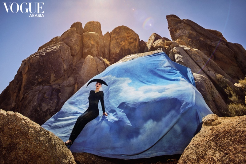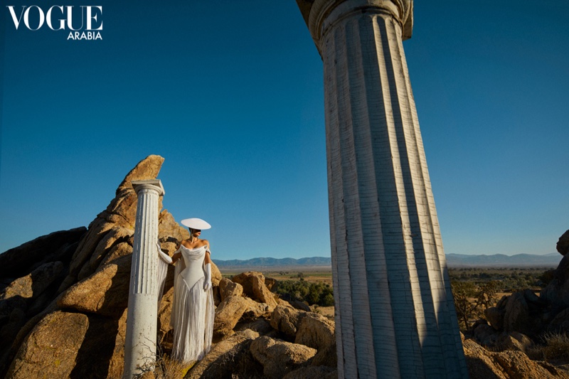 Vogue Arabia представил обложку своего сентябрьского номера. Его главной героиней стала телезнаменитость Ким Кардашьян. В объективе испанского fashion-фотографа Тксемы Ест она позирует на фоне скал, пустыни и древних колонн. В качестве нарядов использованы архивные платья Тьерри Мюглера и новые дизайны от Mugler. Специально для издания Ким дала интервью. Его автором стал муж звезды и рэпер Канье Уэст.