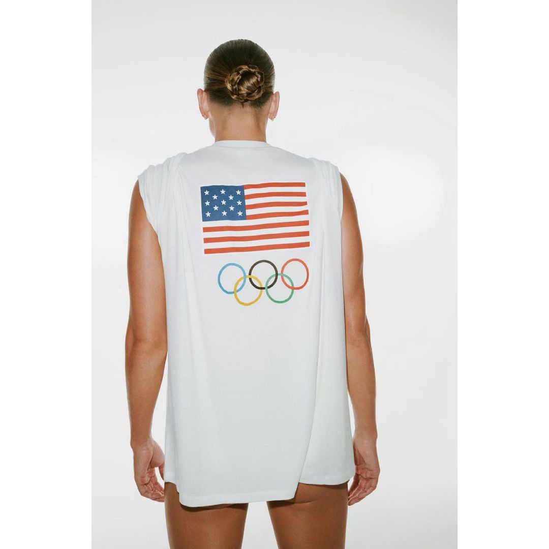 В «олимпийской» коллекции белья и одежды Ким Кардашьян Уэст представлены спортивные бюстгалтеры, рубашки, жилеты, велошорты и трусики с высокой талией с принтом американских флагов, пятью олимпийскими кольцами и символикой сборной США.