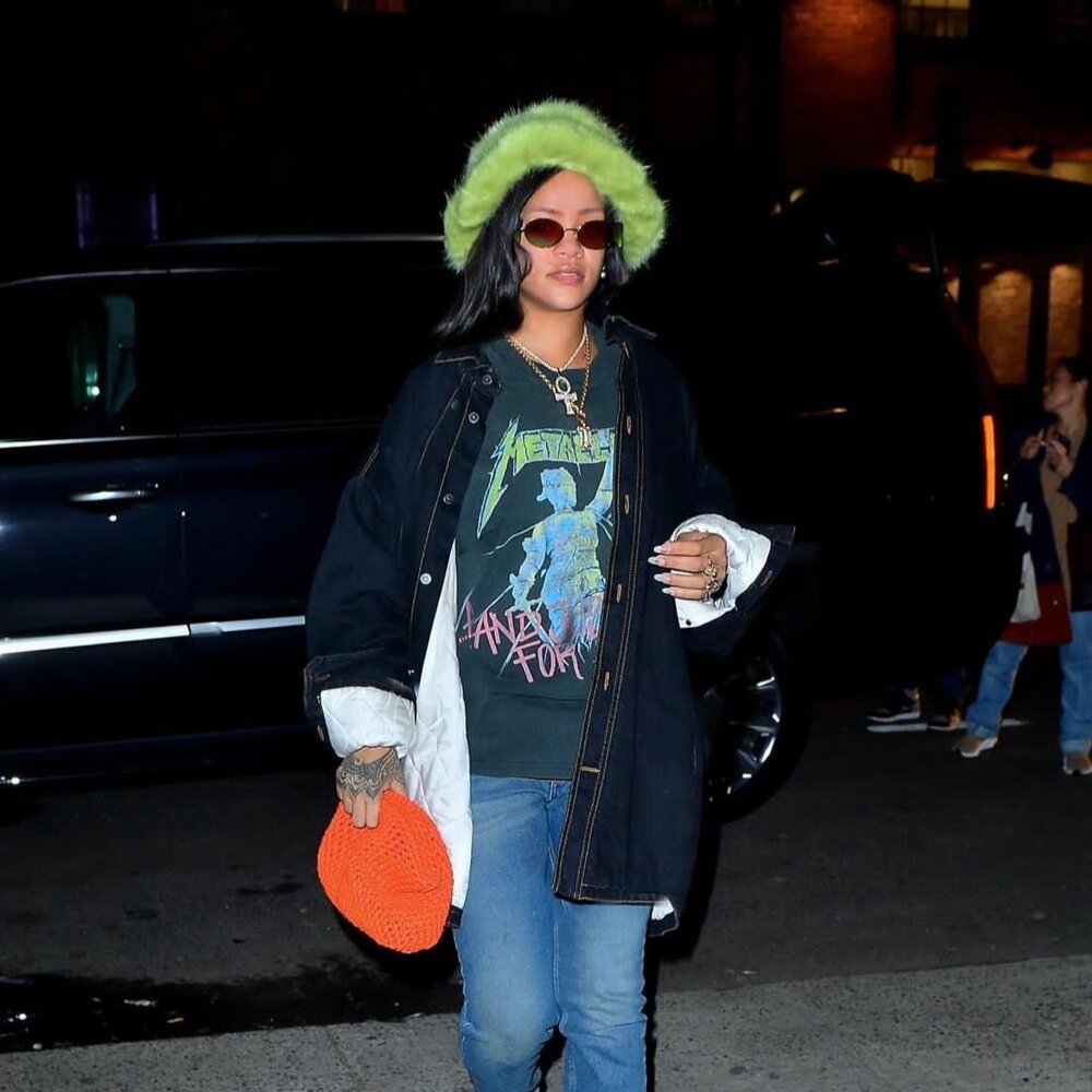 В июле Рианна гуляла по улицам Нью-Йорка в брюках карго с накладными карманами Attico, розовом топе на тонких бретельках и нежно-розовой пушистой bucket hat от британского бренда головных уборов Emma Brewin. На прошлой неделе эту же панаму певица надела с короткими джинсовыми шортами и топом без бретелей Dior, когда прогуливалась по магазинам Нью-Йорка со своим парнем рэпером A$AP Rocky.