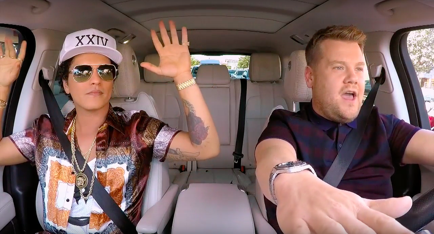 Бруно Марс примеряет яркие шляпы в машине Джеймса Кордена
