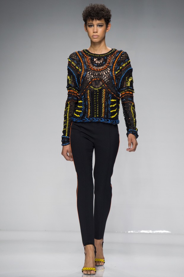 В основе коллекции Atelier Versace весна-лето 2016 — атлетичный кутюр, который создан для женщин, живущих только по собственным правилам. На подиуме появились наряды асимметричного кроя, из кожи и тончайшего шелка. Коллекция состояла из двух частей: спортивной и вечерней. Первая часть продолжила тему феминизма, которая впервые прозвучала на показе S/S 2016 в сентябре прошлого года, вторая — была направлена на классическую аудиторию бренда. Все платья в высшей степени подчеркивали естественные изгибы тела моделей.