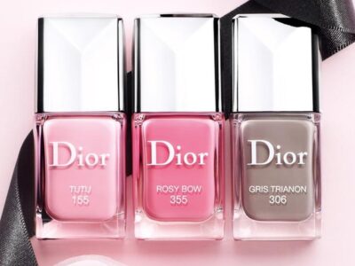 Лаки из коллекция Cherie Bow от Dior выполнены в нежных пастельных тонах. Три оттенка розового цвета дополнены серым лаком Gris Trianon.