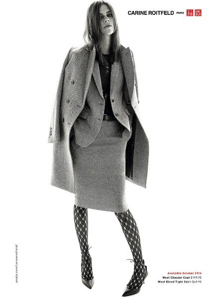 В сети появилось четыре образа из коллекции Карин Ройтфельд для Uniqlo. Новость о создании этой коллекции появилась еще весной этого года. Напомним, что Карин в свое время консультировала такие модные дома, как Max Mara, Givenchy, Vionnet и Balenciaga.